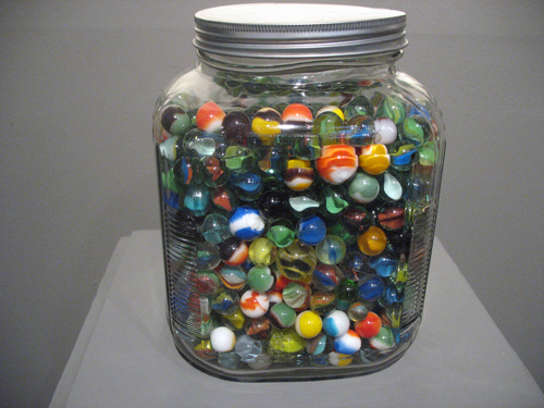 Circles (2007). Glass marbles, glass jar.