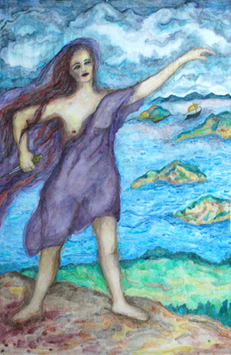 Medea (2006) Medea (2006). 100″ x 66″. Watercolor on fabric. Medea (2006). 100″ x 66″. Watercolor on fabric.